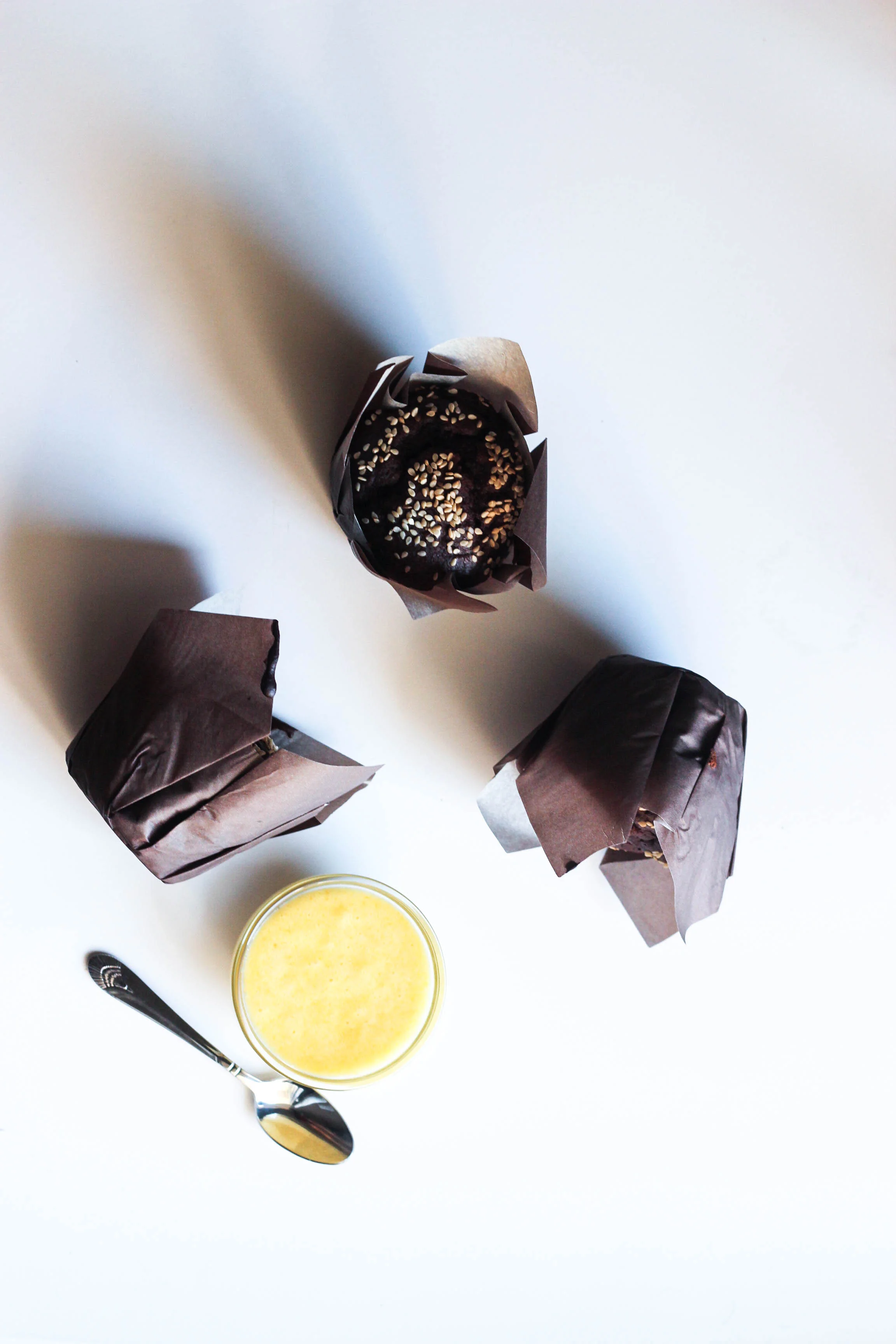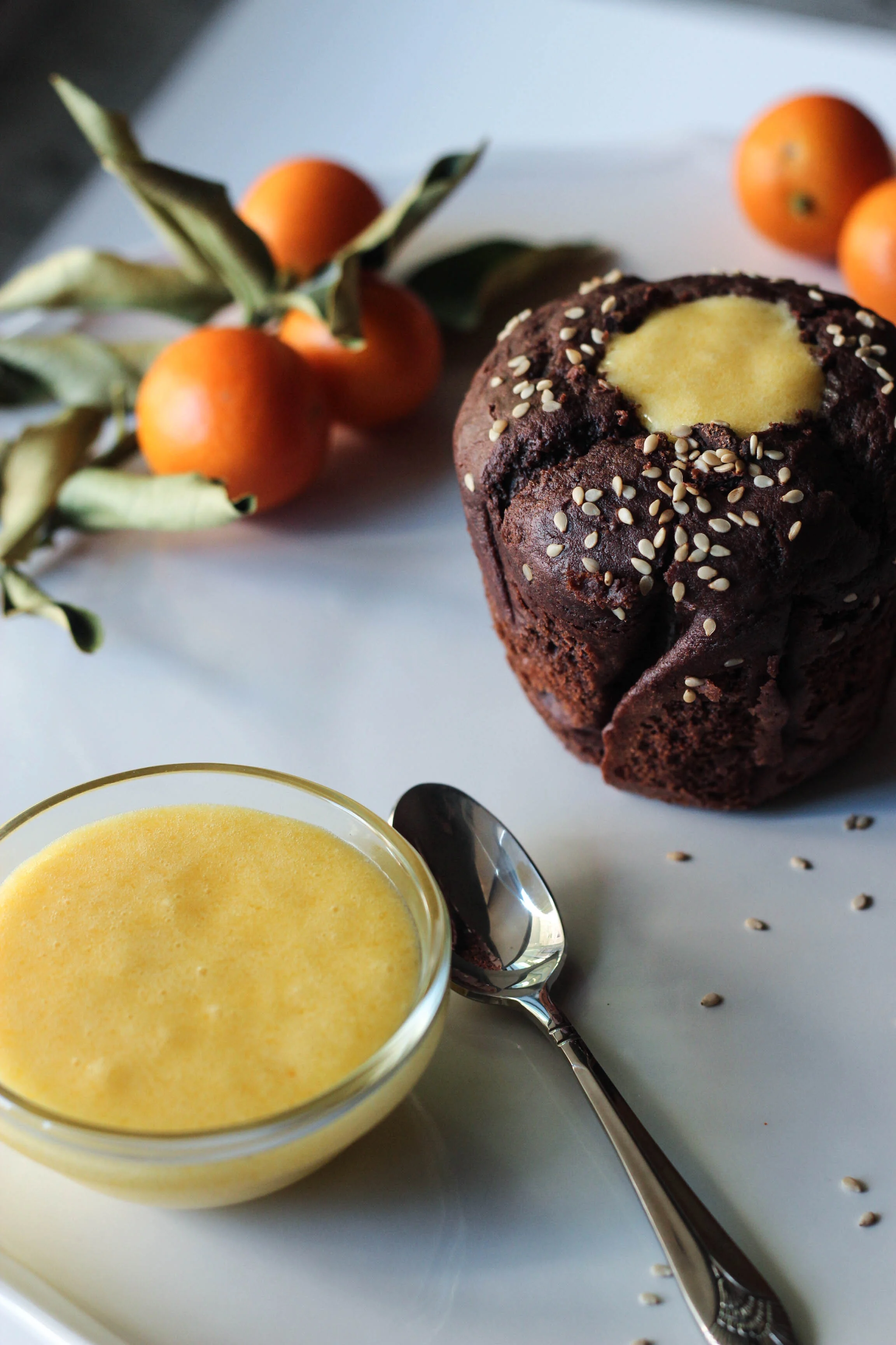 Toasted Sesame Chocolate Muffins + Kumquat Curd