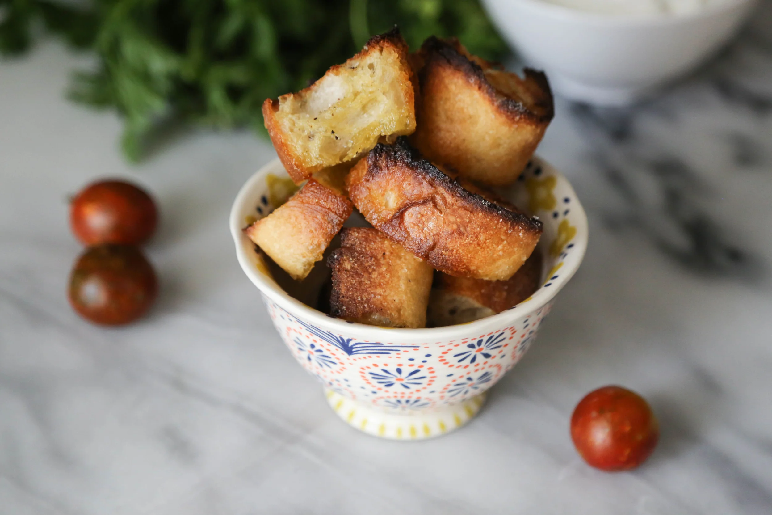- Slice 1 cup of cherry tomatoes in half and toss it with all of the above ingredients.