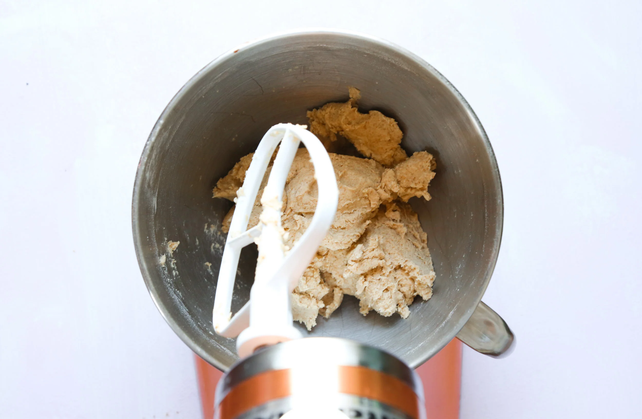 - Place the butter in the bowl of a stand mixer fitted with a paddle attachment. Sift in the flours and salt and mix on low until combined and just slightly crumbly. Add in the water and mix until it all is just coming together to form a smooth dough, don't over-mix. See photos above for reference on appearance. Transfer onto a sheet of plastic wrap and form into a disk. Tightly wrap in the plastic wrap and refrigerate for two hours, up to overnight.