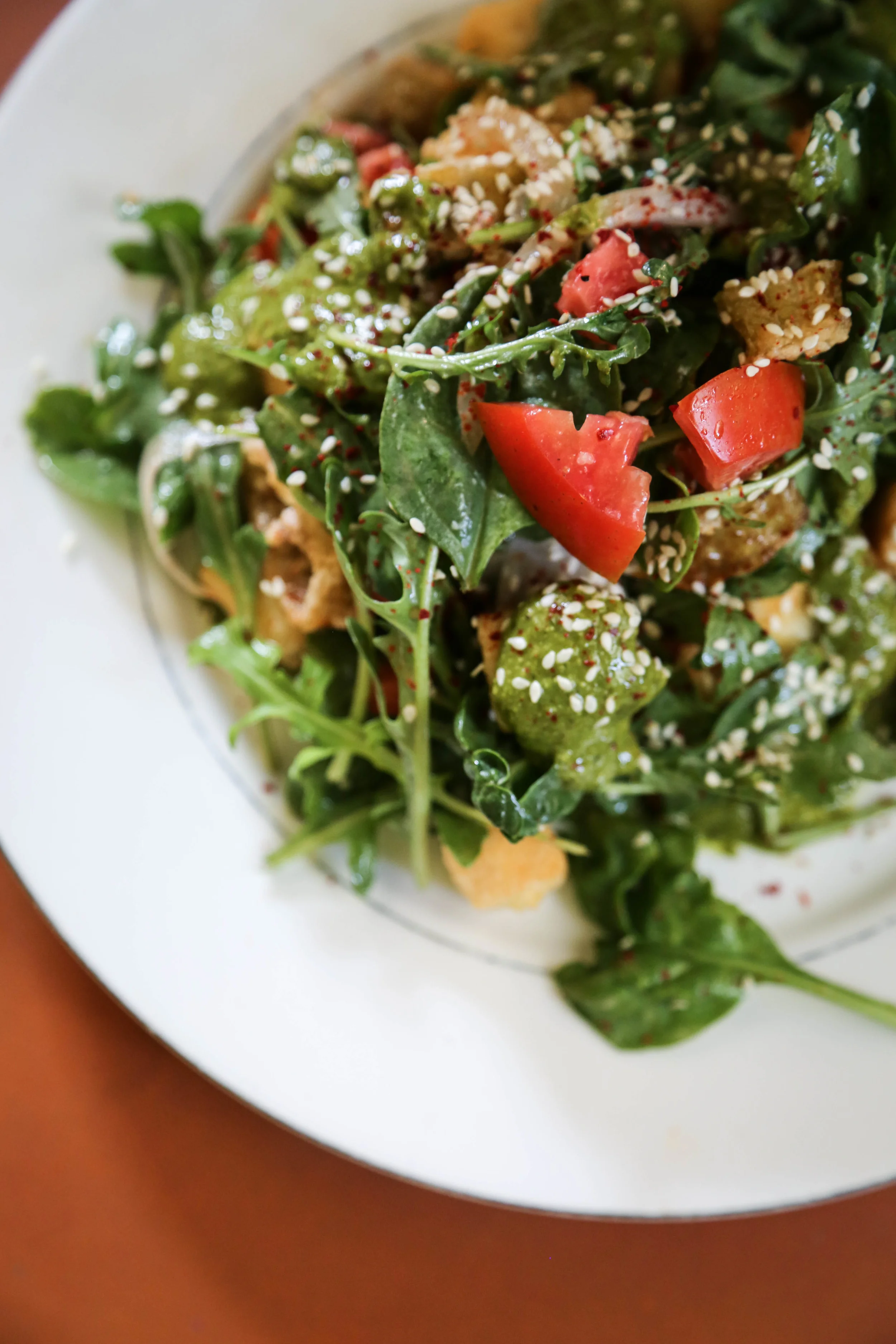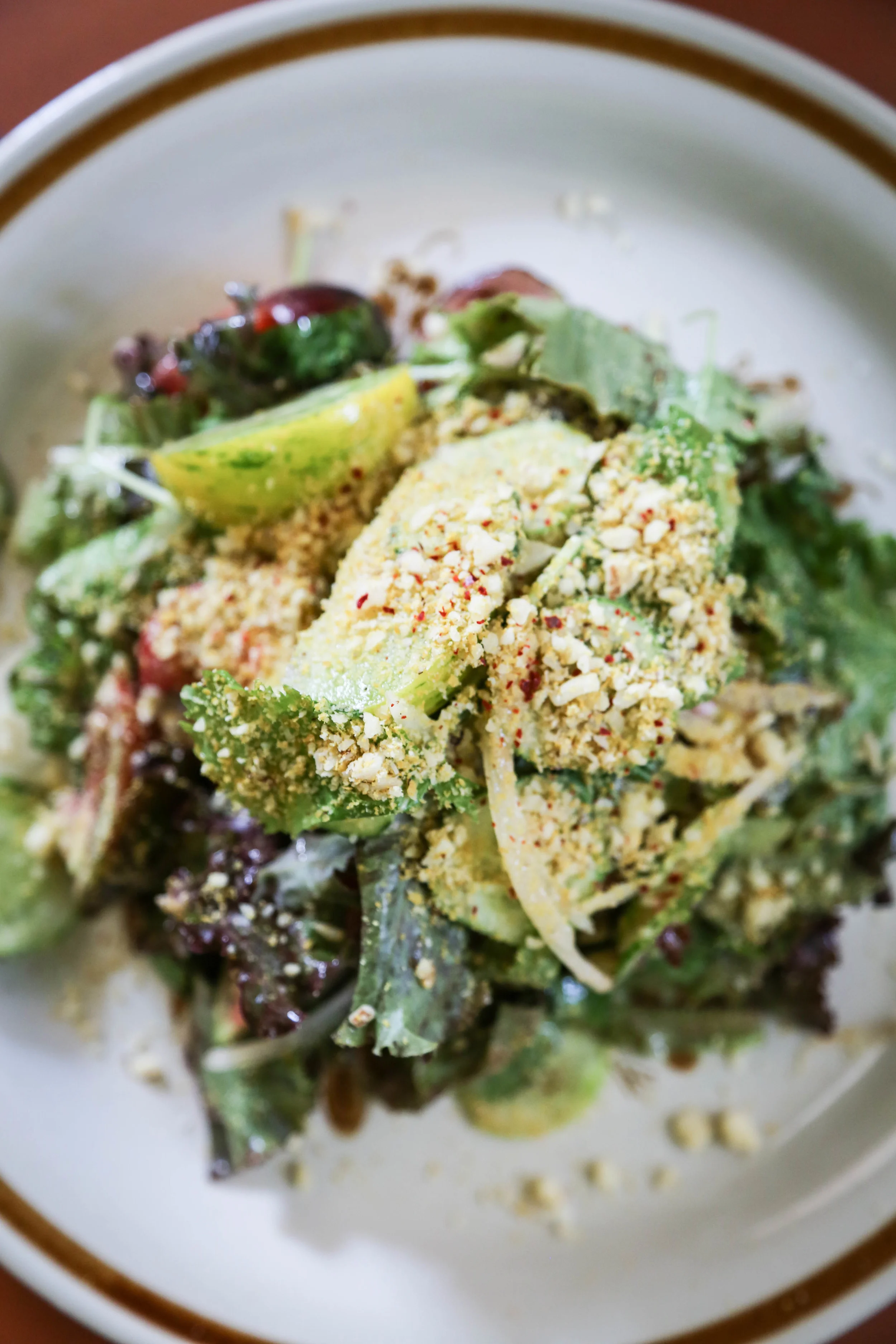 Fried Pickled Pepper and Tofu Salad // Is there much to be said? We were devastated when Ben took his buffalo tofu salad off the menu, but this lil gem quickly filled that void in our hearts. It's deliciously crispy and covered in what may be the literal best pesto dressing ever created.