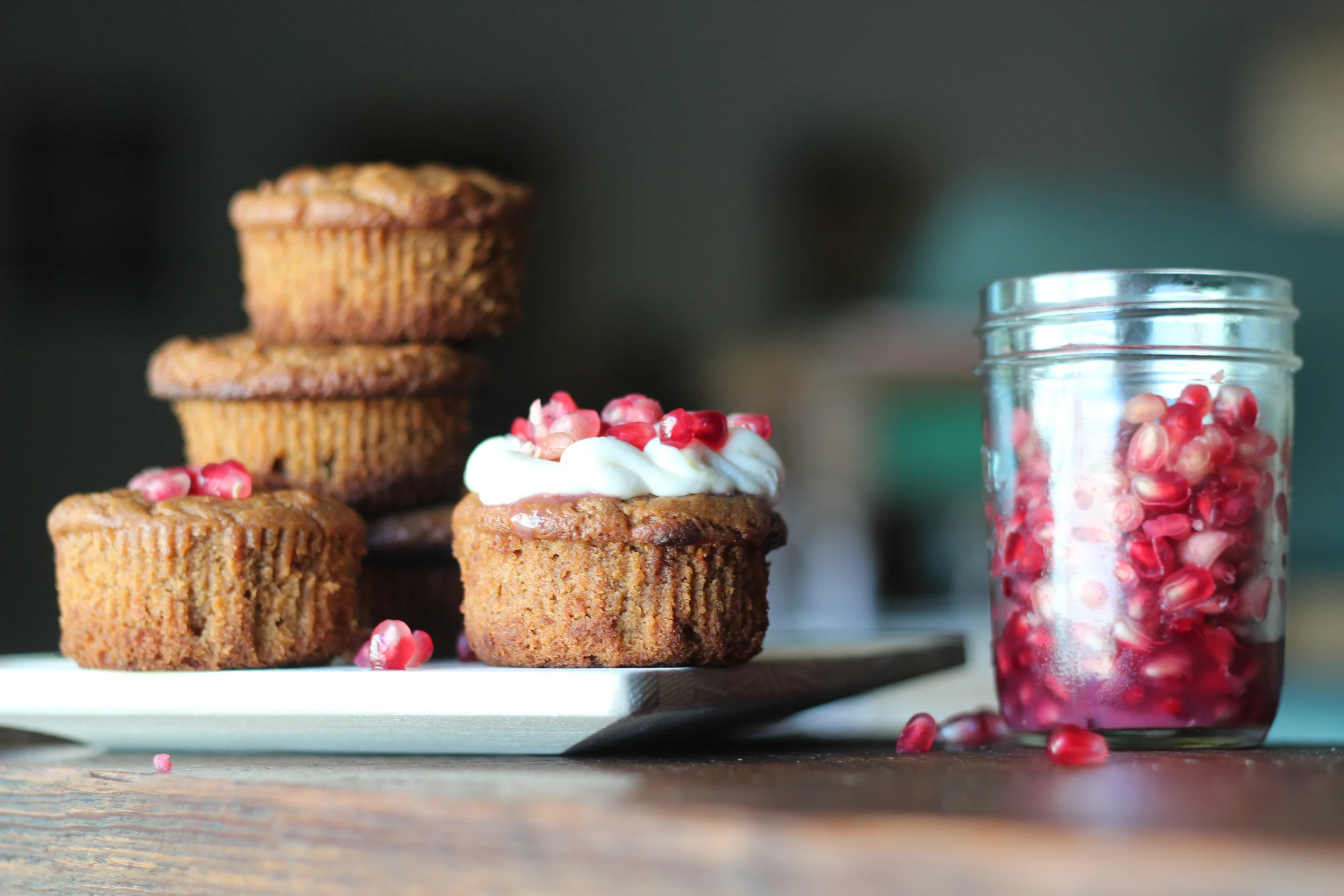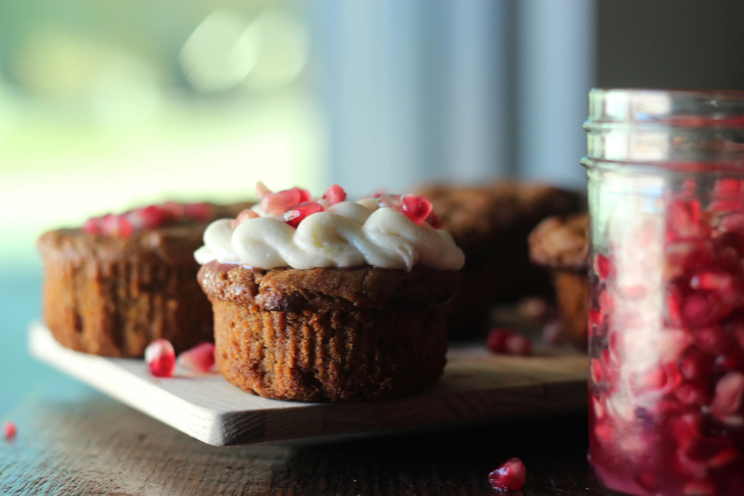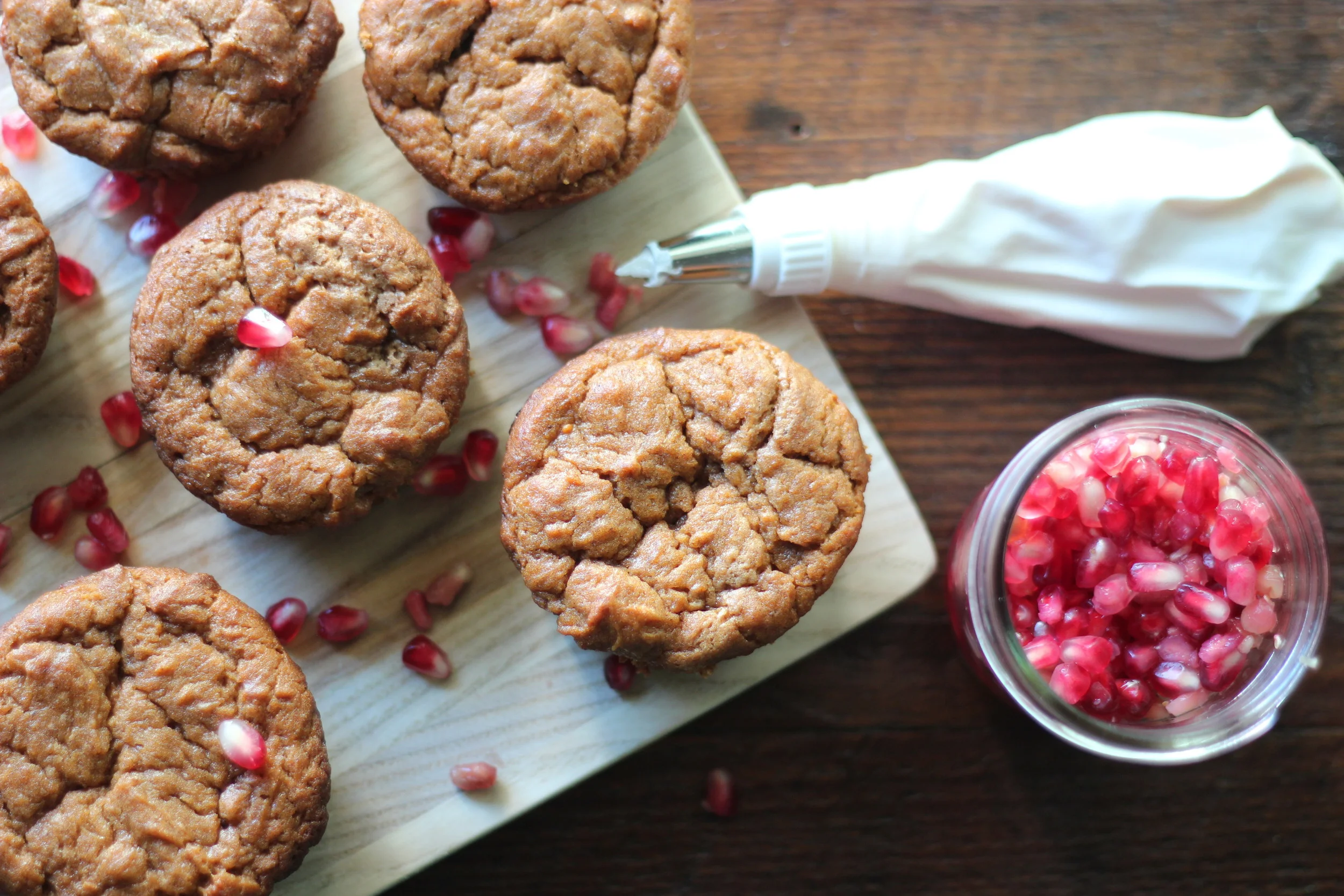 Also, there's sweet potato in this cupcake, which is kinda cool because how often do you get to eat a cupcake with a root in it? But it works! The brown sugar helps meld the sweet potato flavor with the pomegranate and some orange notes really round the whole thing out. I made these gluten-free because they were for a family thing but you could totally make these babes with tons of gluten. I'll give instructions on all of that in the recipe, bitch.